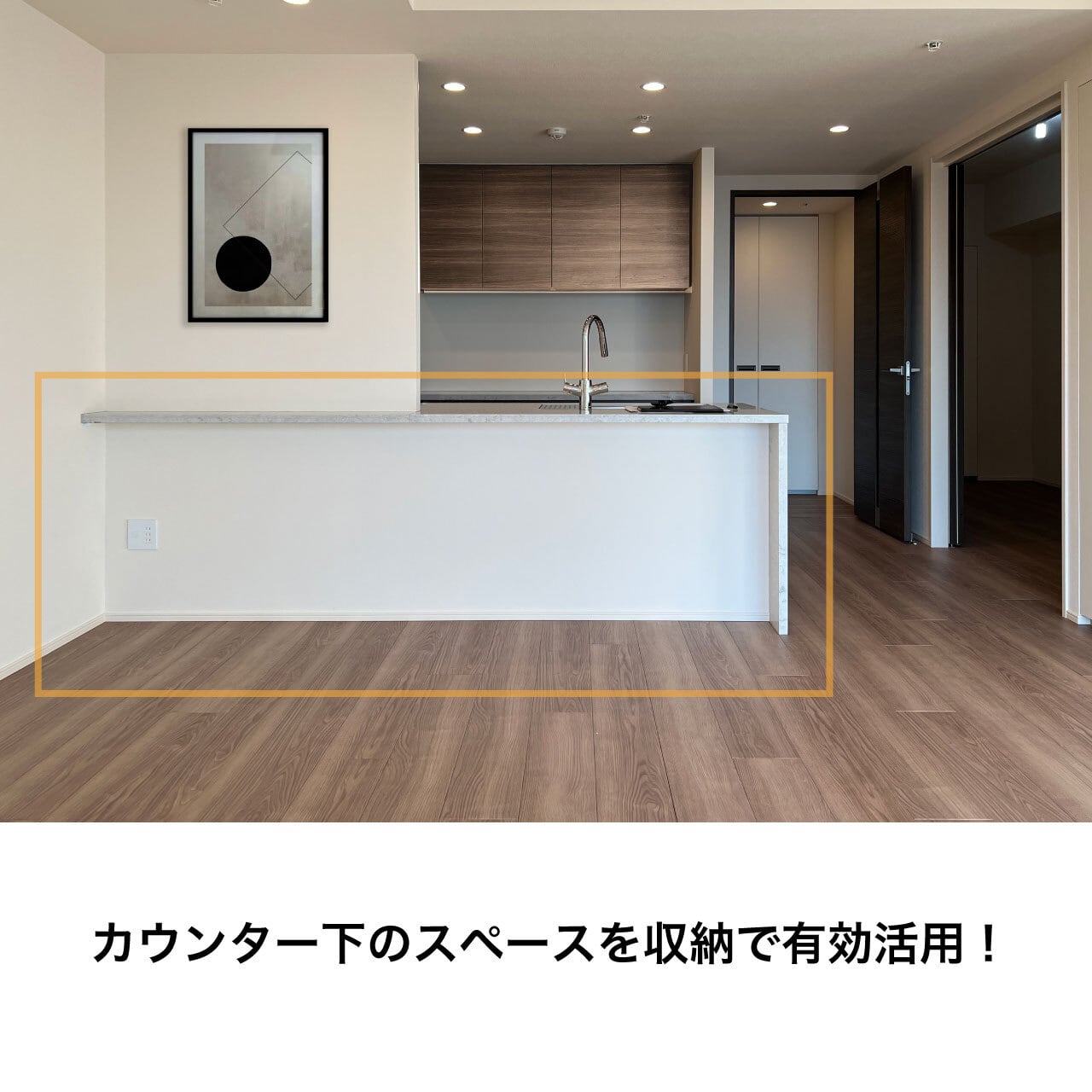 マンションや一戸建てのカウンター下に設置する収納家具です。設置場所に合わせたサイズで製作。独自のシステムを使い、大工工事無しで隙間やつなぎ目の目立たない設置方法を実現、余計なコストをかけずに造作家具のような仕上がりに。完全に固定しないので、賃貸でもOK、簡単に分解、移動も可能です。バーチカルは扉の境目がわかりづらい格子扉を採用、建具のようなデザインに仕上がります。